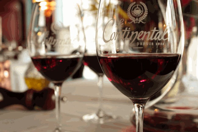 La cave à vin du Continental impressionne par sa grande sélection de crus composés principalement de vins français, italiens et américains. Elle offre un choix de plus de cinq mille bouteilles dans plus de quatre cents variétés, du plus abordable au plus grand cru classé.