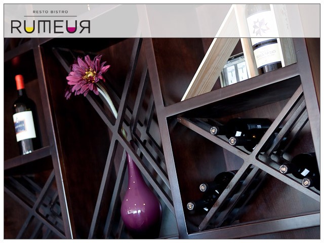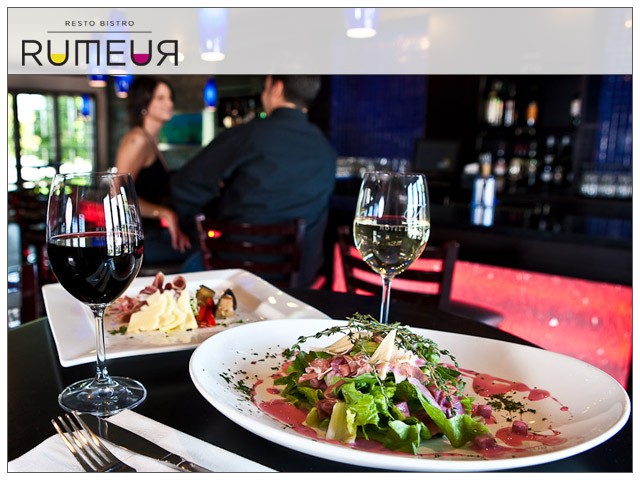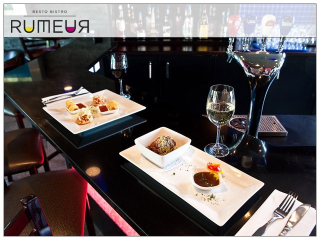 Il n'y a pas de mots pour décrire le RESTO BISTRO RUMEUR situé dans l'Hôtel V à Gatineau. Le mot « actuel » manque de force. « Moderne » n'en dit pas assez. « Chaud » ne fait que refléter notre ambiance. Disons tout simplement que cette boîte se caractérise par un mélange singulier d'élégance, de simplicité et de piquant traduisant un certain élément qui fait fureur auprès des mordus de la gastronomie et une ambiance raffinée et urbaine chic. Le thème adopté est relié au nom RUMEUR et c'est dans cet esprit que le décor a été adapté.